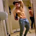 college kid who is big into sports, gym, lifting heavy and showing it off